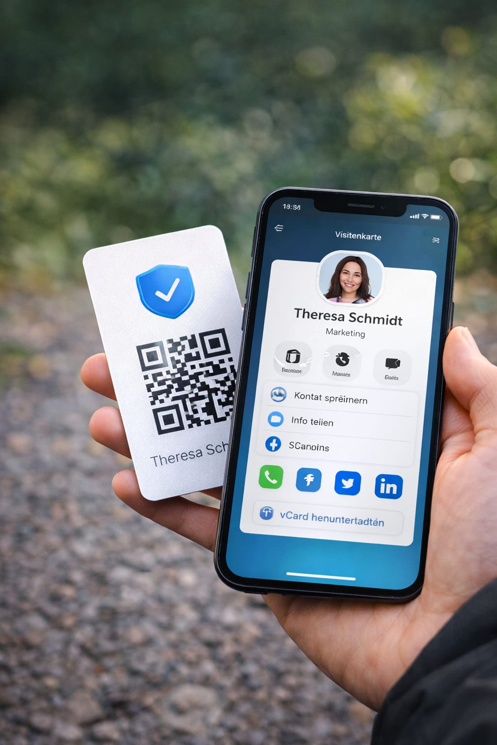 - 2) Scan / NFC → Link öffnet eine klare Seite (ohne App)